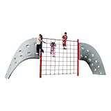 SportsPlay's Aztec and Rope Play Climber has three twisting climbing walls and three rope nets, so it's big enough to provide climbing fun for up to 25 children. Each wall is made of weather- and fade-resistant polyethylene with footholds decorated with Aztec symbols. The nylon climbing nets are coated so they are easy to grip. Recommended for children ages 5 to 12 years. Powder-coat paint. Assembly required. Conforms to ASTM F1487 standard.